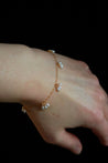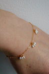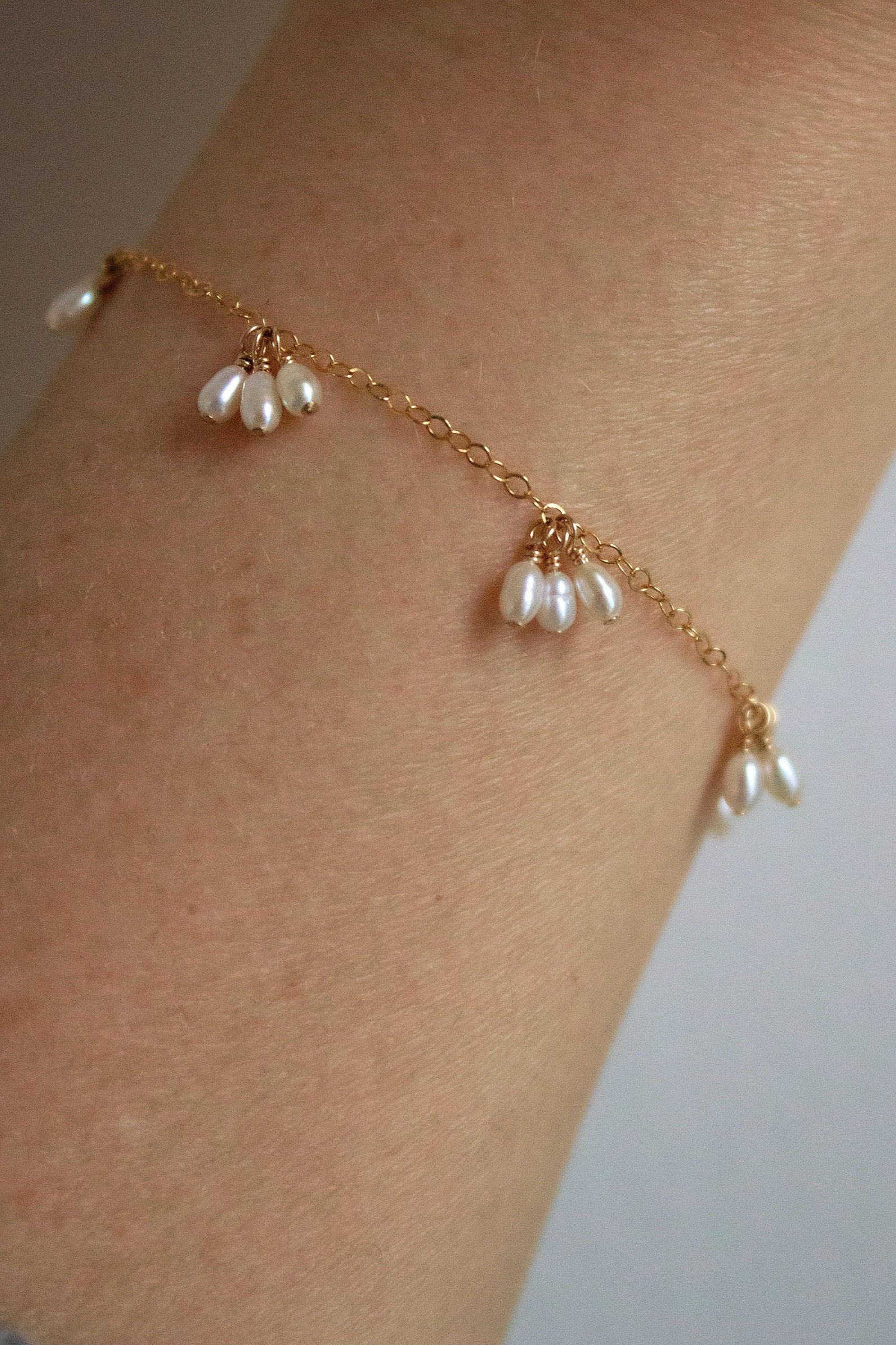A dainty and minimal chain bracelet with tiny freshwater pearl dangles.  Looks amazing layered or on it's own.