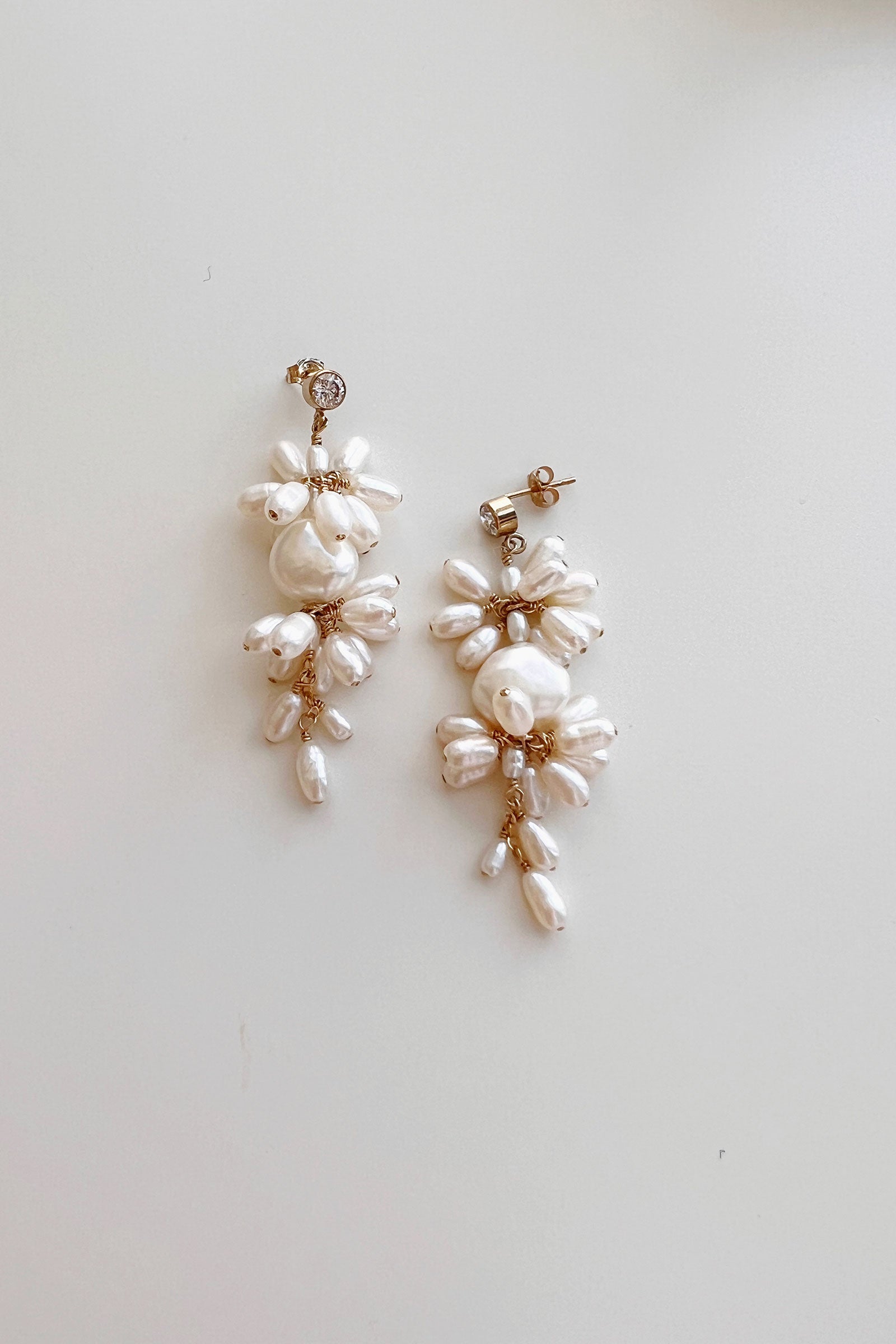 Le Fleur Earrings are composed of signature freshwater pearls fleurettes and baroque pearls on a 4mm cz stud post.  They are the perfect earrings if you are looking for a simple statement.   Lightweight and comfortable to wear.  Due to the nature of natural pearls each pair is slightly different and unique to you.