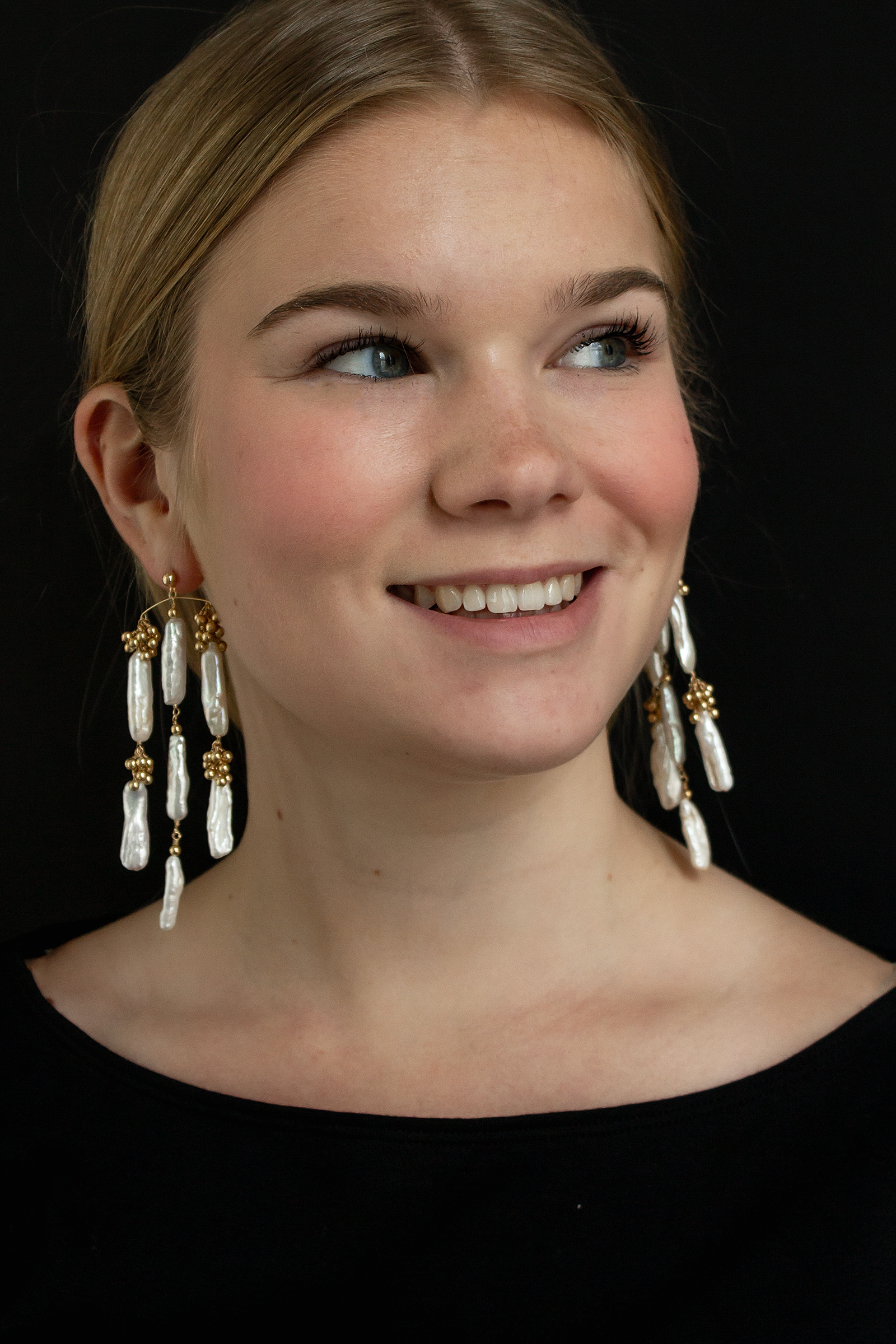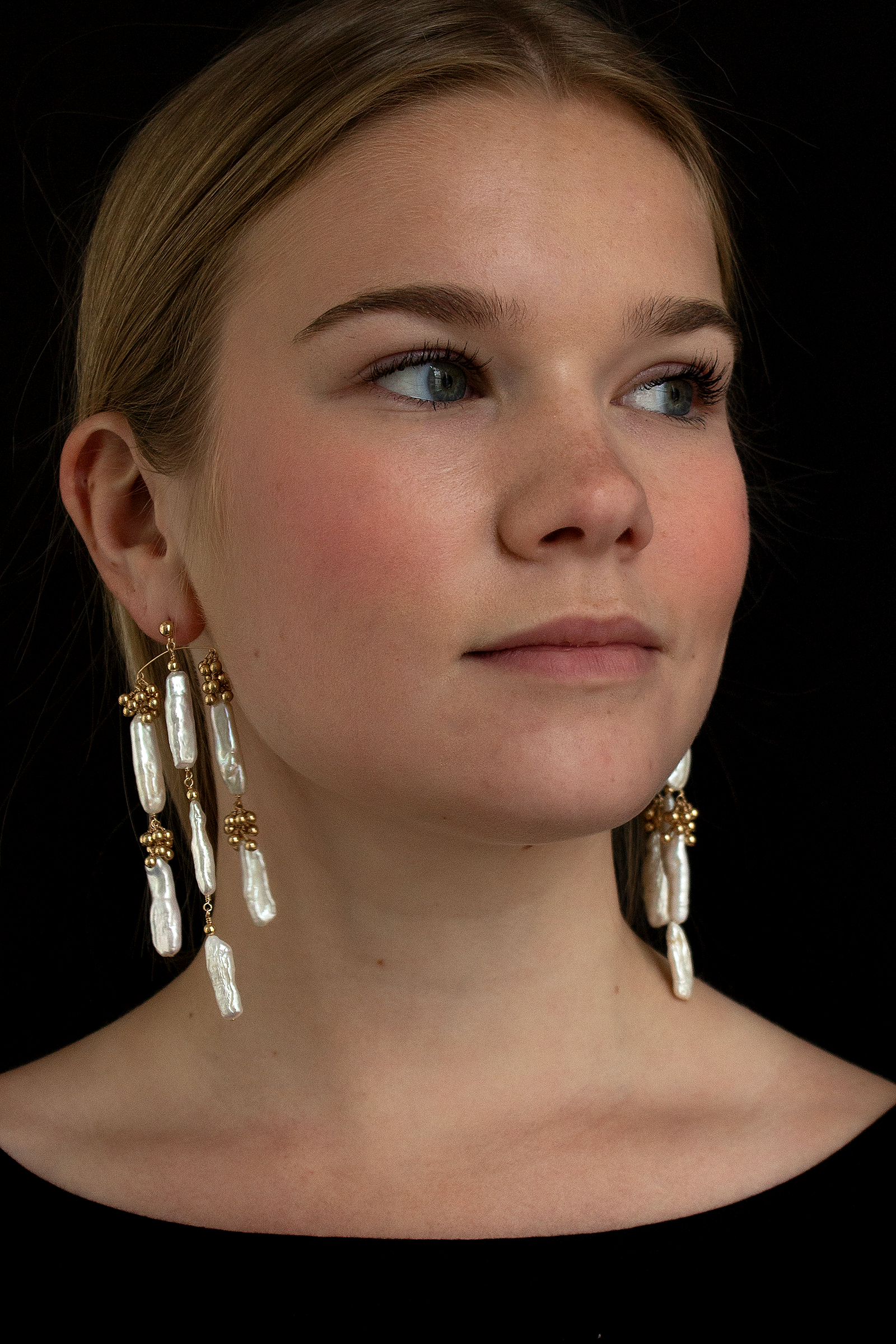 Statement worthy earrings call for the Eyelet Chandelier Earrings. Composed of hand-fabricated signature "gold/silver dust" detailing and genuine freshwater pearls. Completely handcrafted making each pair unique. 14k gold filled or sterling silver posts. Lightweight and easy to wear! Love these with a strapless gown or simple slip dress!