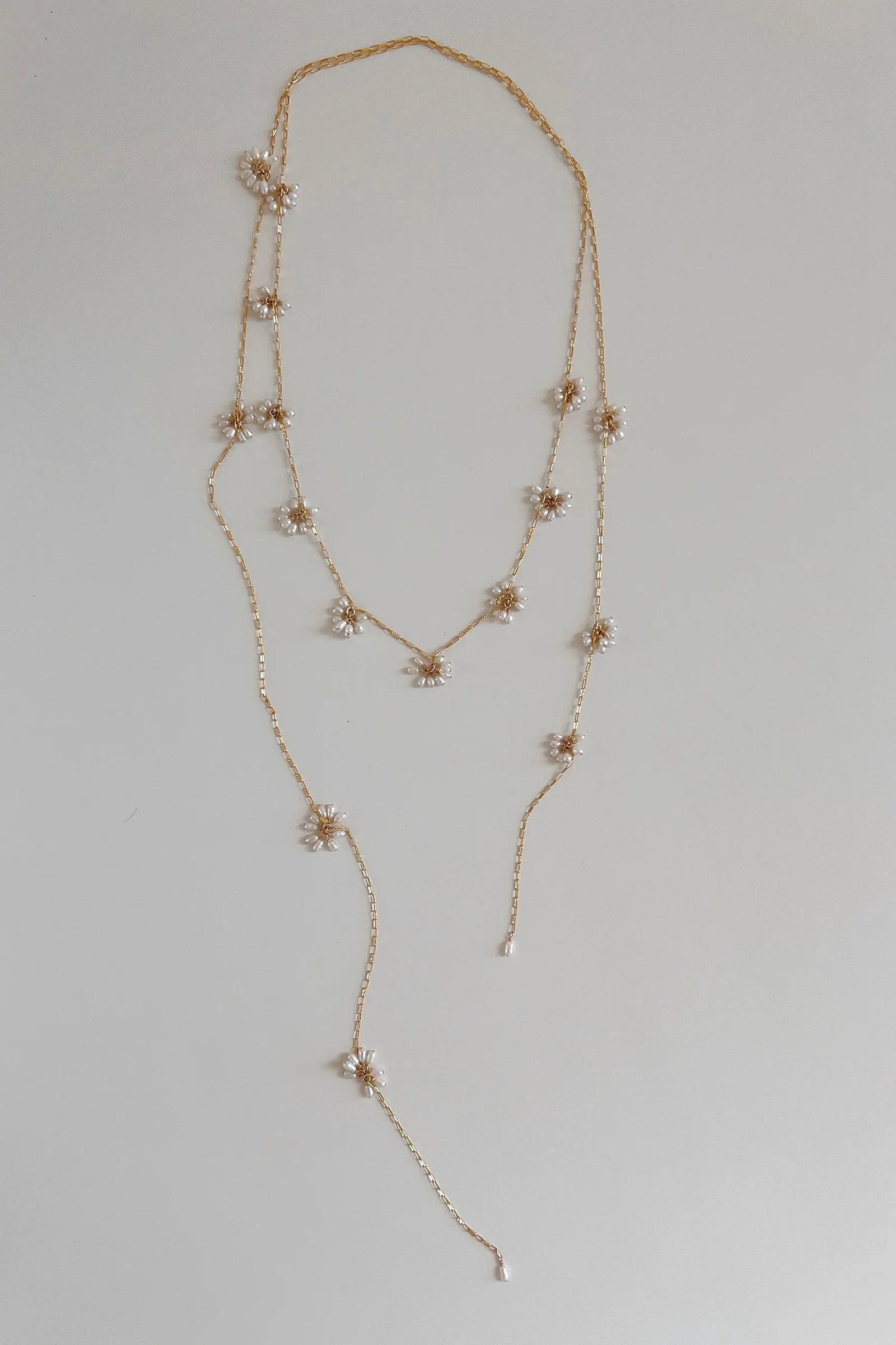Designed to be worn multiple ways - the Fleurette Wrap Necklace features 50 inches of handcrafted freshwater pearl clusters and 14k gold filled or sterling silver chain. Wrap around your neck in the front and cross the ends, or let them dangle freely. This necklace also looks great as a back drop necklace. There is no clasp so it's the perfect piece to create your own look with!