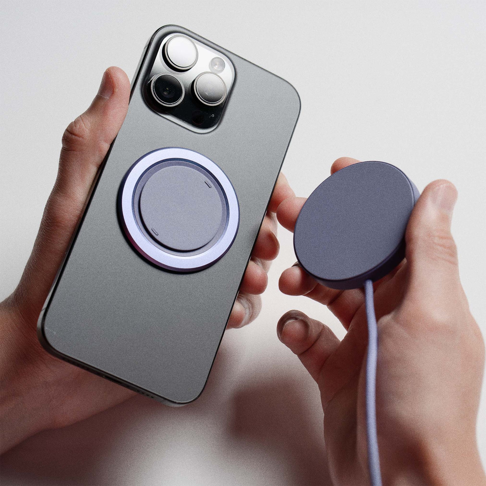 Verenni Grip paired with the only charger guaranteed to charge through it! Grip it. Spin it. Kick it. Stick it. Swap it. Pocket. Use Verenni Grip as a one or two finger grip with full 360° rotation, kick it into a rock-solid stand, or snap it to anything metal. The glueless MagSafe® design makes swapping accessories effortless (Grip 5 only) and, at just 3mm thin, it slides into your pocket without a snag. Built with a sleek metal trim and includes an adapter for non-iPhones & cases.